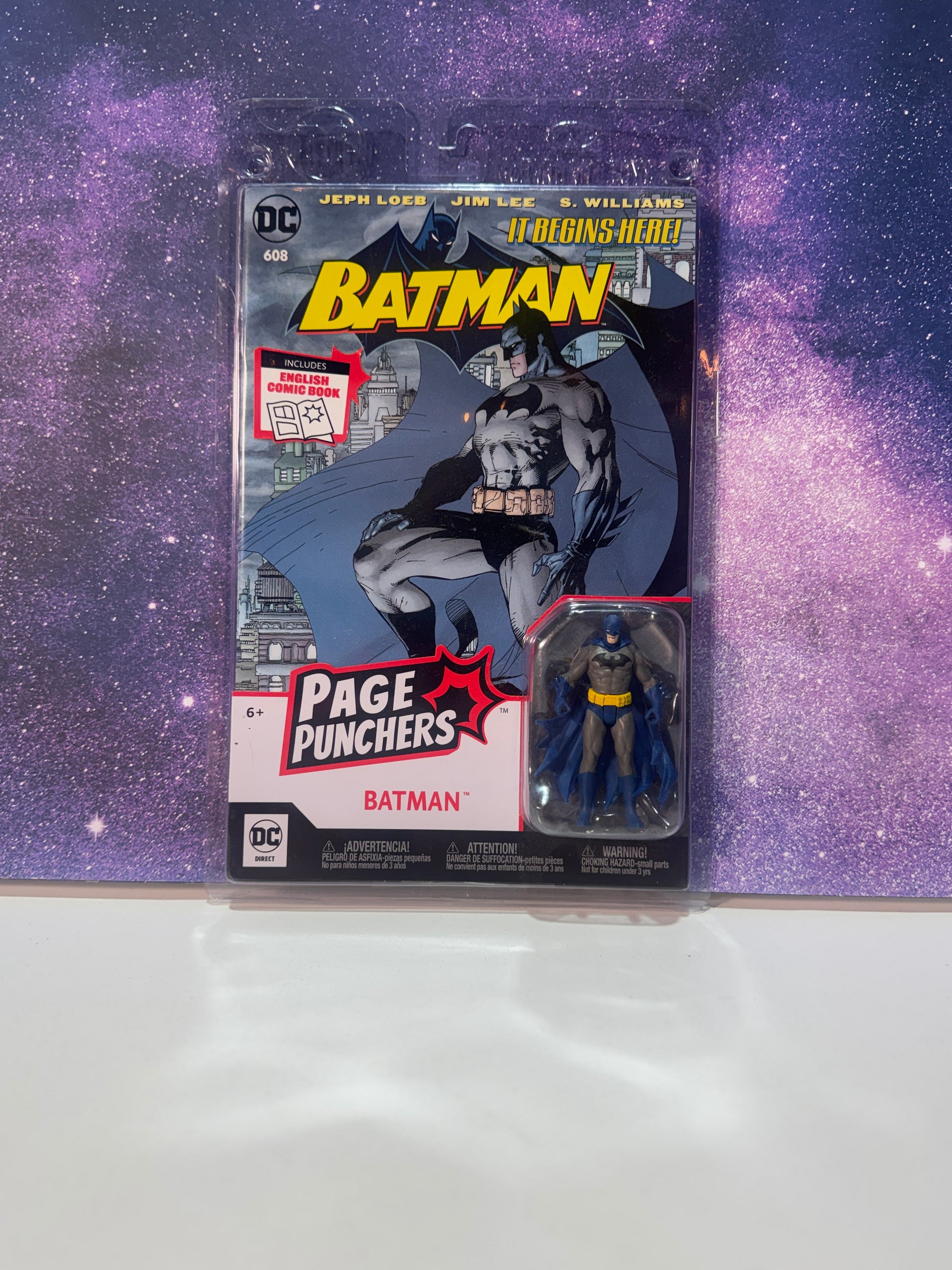 The DC Batman Page Puncher Includes a English Batman Comic book with a 3" action Figure Attached to the Exclusive Comic Book